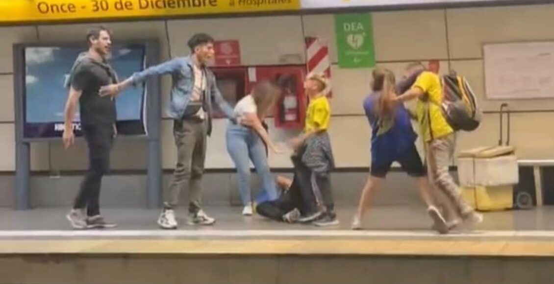 “La sociedad esta arruinada”. Esa fue la frase que eligió un usuario de redes sociales para describir la secuencia que capturó en una de las estaciones de la Línea H de Subte de la Ciudad de Buenos Aires. La filmación comenzó con un hincha vestido con la camiseta de Boca entonando canciones contra River en pleno andén. Otro usuario de ese servicio de transporte, simpatizante del Millonario, le respondió desafiante. Fue el comienzo de una violenta pelea que no solo se redujo a ellos dos, sino que abarcó a otros usuarios e, incluso, al hijo del fanático Xeneize.