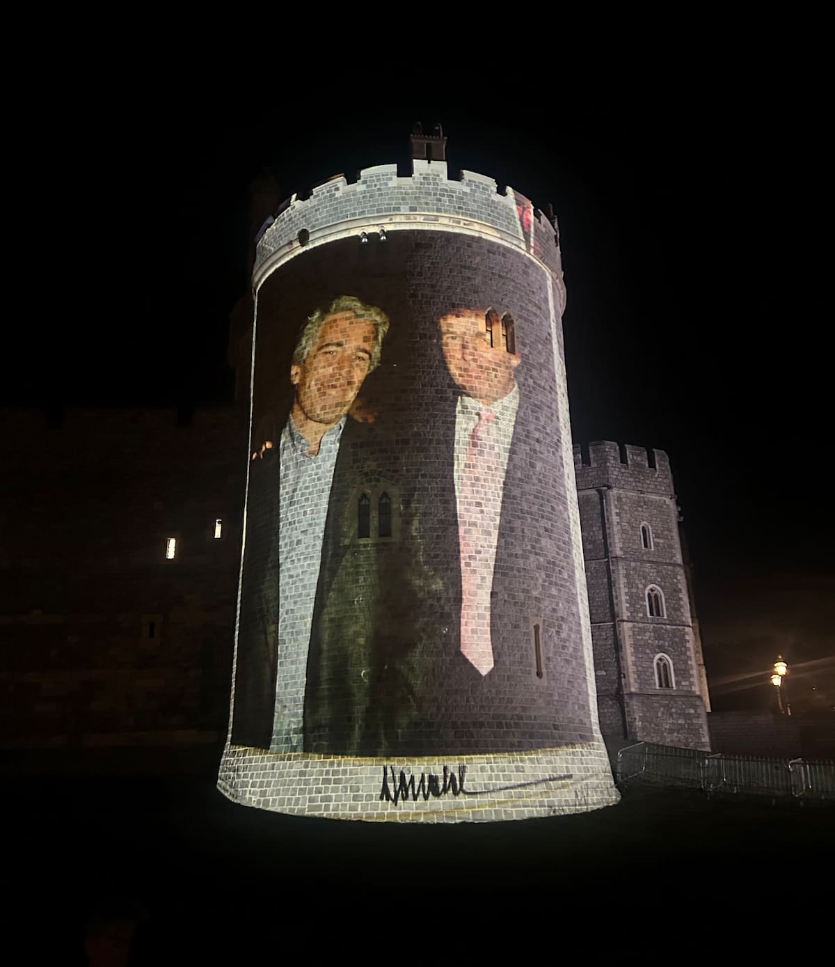 El castillo de Windsor fue escenario este martes de una proyección de imágenes del presidente estadounidense, Donald Trump, junto al criminal sexual Jeffrey Epstein, horas antes de la visita oficial que el mandatario cumplirá en el Reino Unido, que incluirá una recepción en esa residencia real. La acción, que incluyó fotografías, montajes de prensa y retratos del financista, se desplegó sobre una de las torres del histórico edificio en el oeste de Londres y derivó, según informó Reuters, en la detención de cuatro personas.
