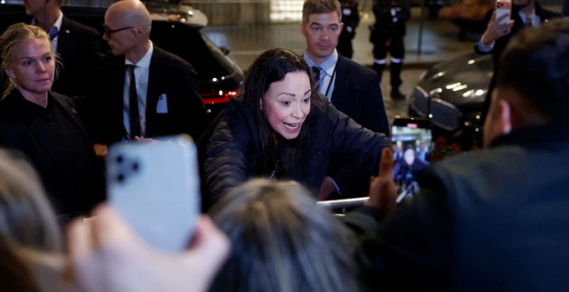 Entre gritos de “¡Nuestra líder, te amamos!” “Valiente” “¡Libertad, libertad, libertad, Venezuela, libertad!“ y banderas venezolanas flameando bajo el frío noruego, la dirigente opositora —que llevaba más de un año sin mostrarse en público por razones de seguridad y 14 años sin salir de su país— saltó el cerco y se mezcló con quienes la acompañaron durante su llegada a Europa. La escena se produjo apenas horas después de su entrada clandestina a Noruega, en el marco de su viaje por el Premio Nobel de la Paz.